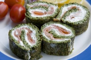 Frischkäseröllchen mit Stilmus und lachs